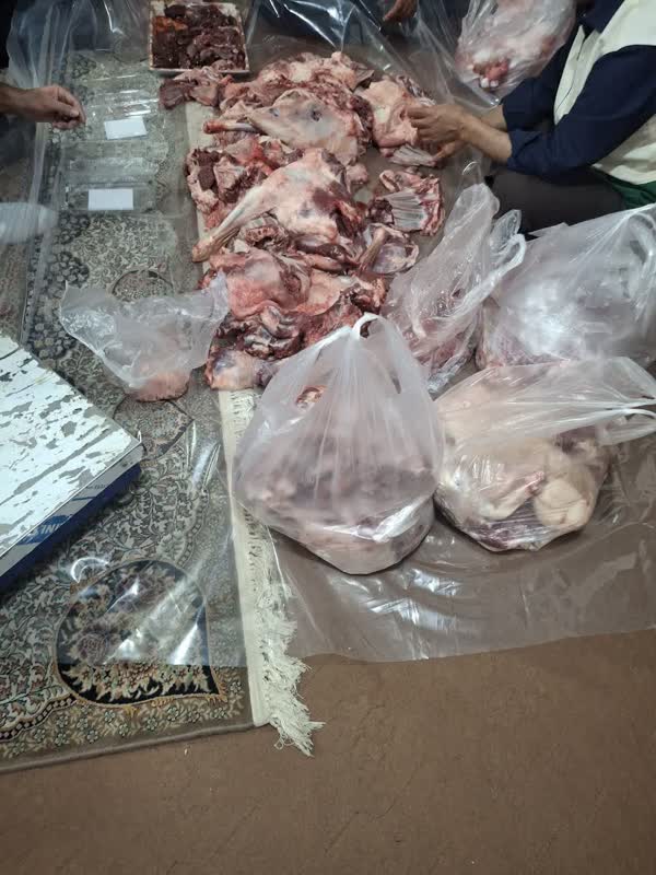 گوشت گرم گوسفندی یک کیلویی به تعداد76بسته آماده و در ایام شهادت حضرت